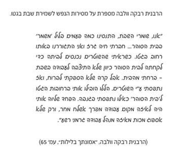 בספרה "ואמונתך בלילות" מתארת הרבנית וולבה את מסע הייסורים שעברה בשנות הזעם.