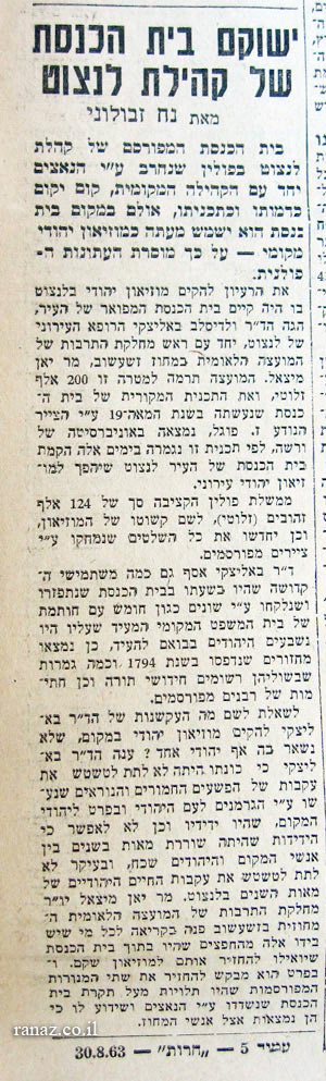 גלריה מצולמת מבית הכנסת ומחדרו של המגיד מקוזניץ, ועוד פרטים על בתי הכנסת בלנצהוט, בפרק הבא אי"ה.
