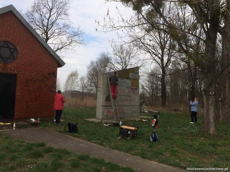 שנת תשע"ו, מתנדבים מסירים כתובות גרפיטי אנטישמיות מבית העלמין בסוכטשוב. מוזיאון סוכטשוב